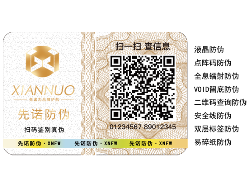 使用防伪技术:浙江防伪标签企业,先诺,运用标准数码防伪技术印刷防伪标签